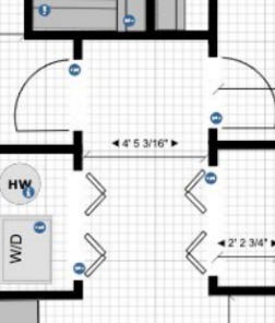 Speaking of closet rods, the “walk in” isn’t a real walk in. Remember, that line shown in the closet is where the rod is, so it marks the *middle* of where clothes are hanging. You need 24” clear for clothes to hang.