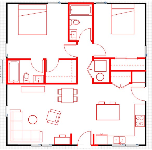 That said, I kept all exterior windows and the overall exterior wall dimensions as-is. I tweaked the locations of the exterior doors.